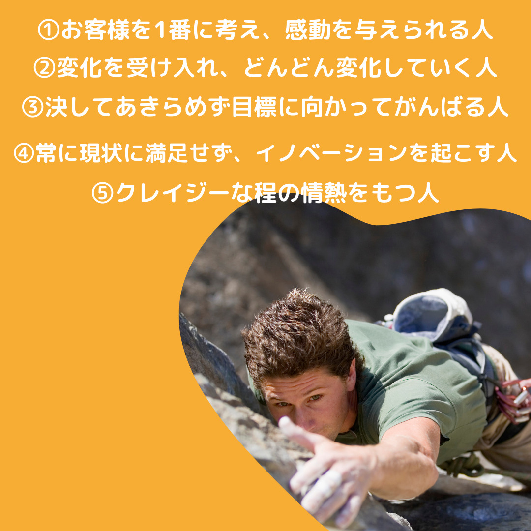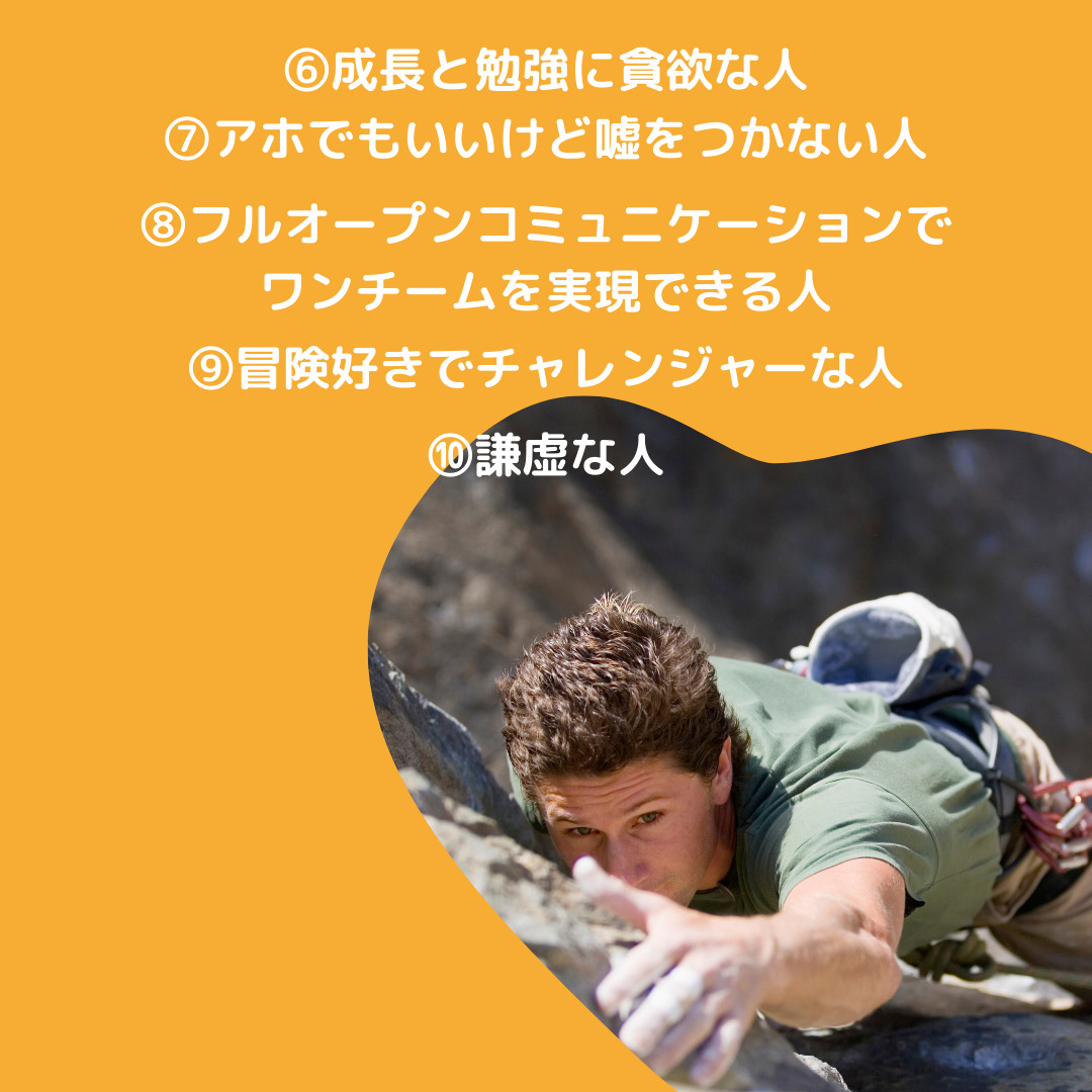 イーストエンドでは、写真にある項目のような人を求めています。
