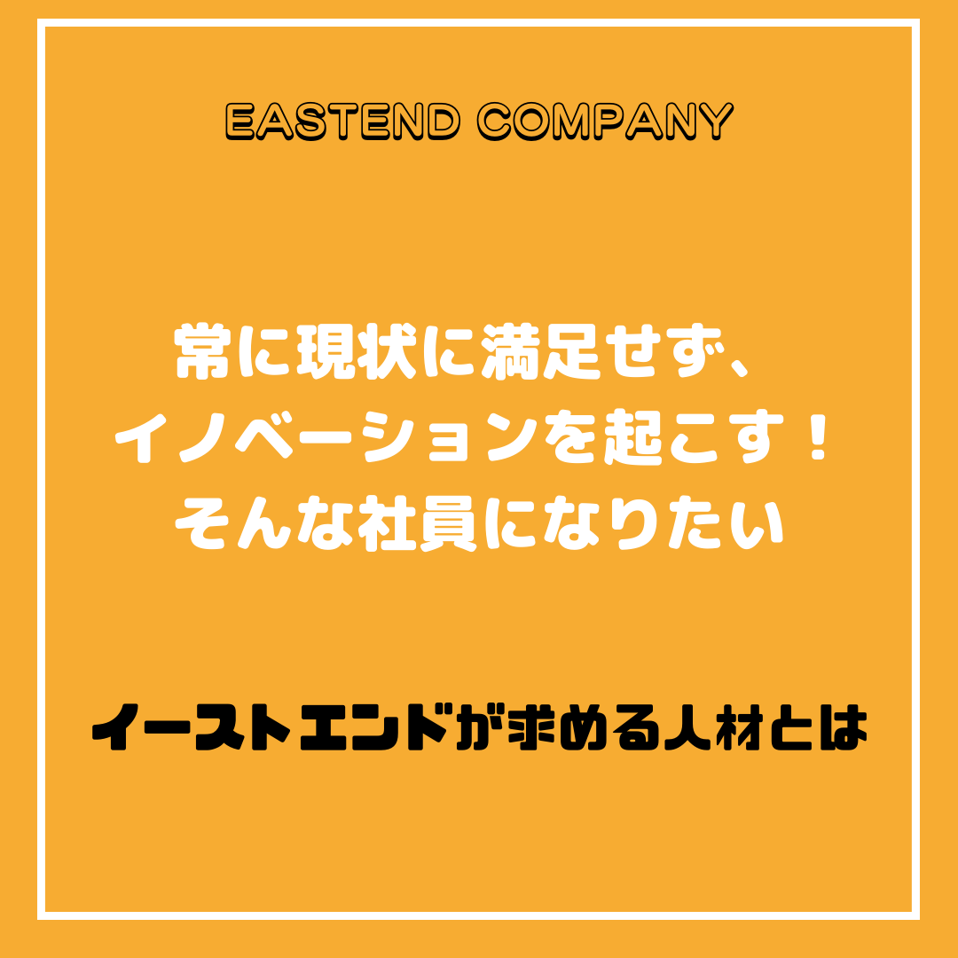 イーストエンドカンパニーには、常に現状に満足せず、イノベーションを起こそうと考える人達がたくさんいます。