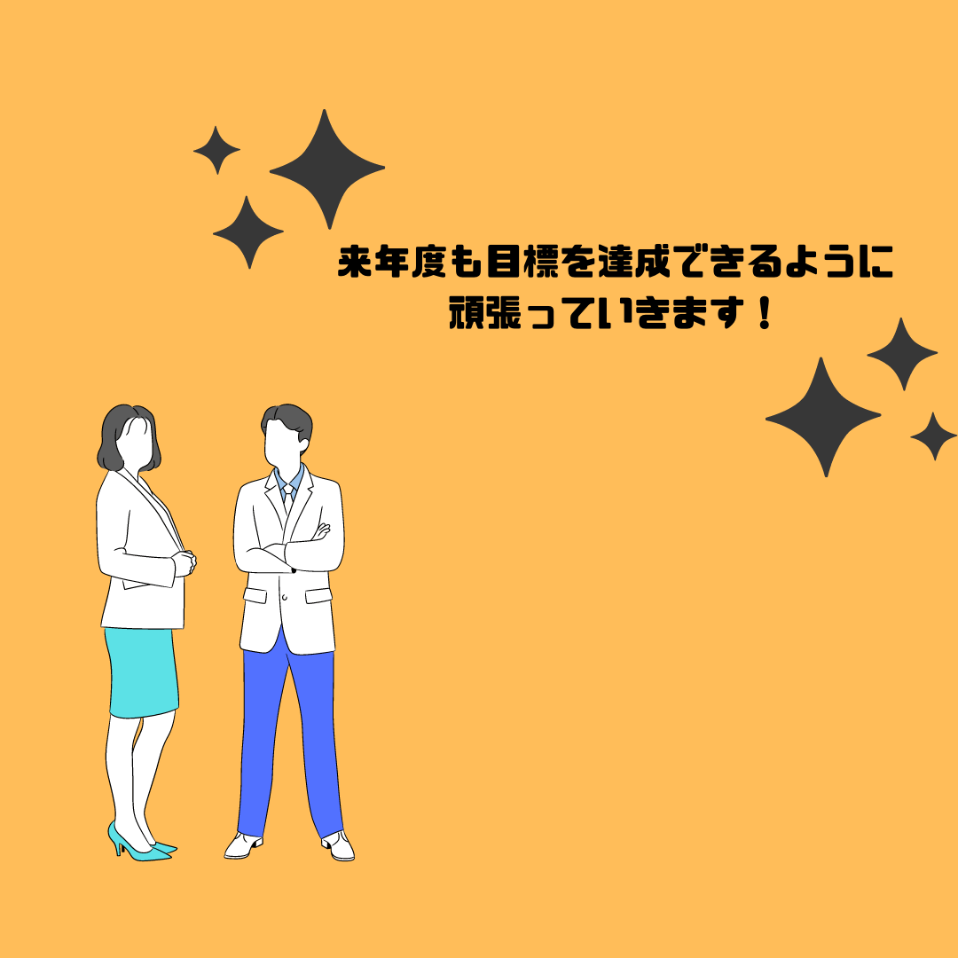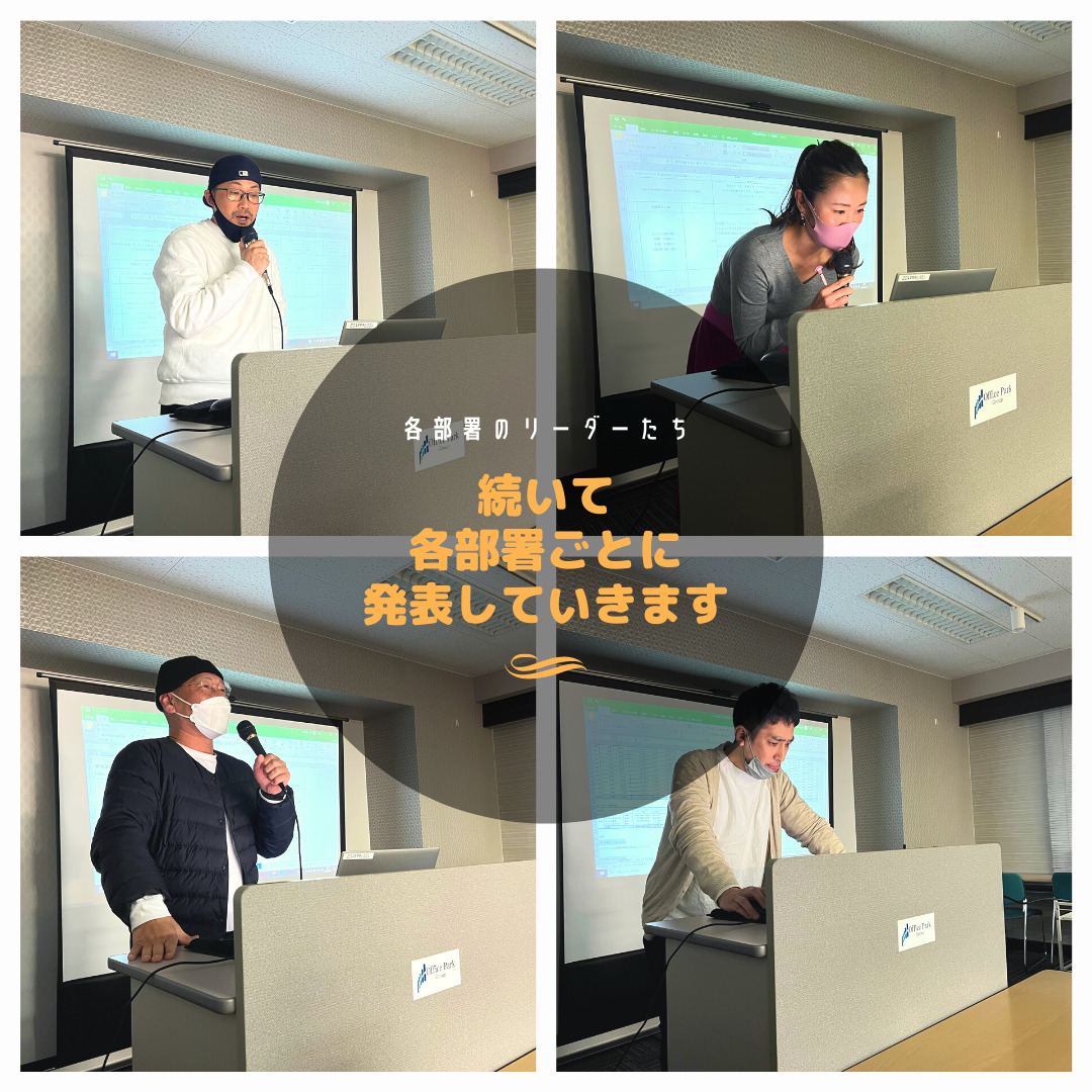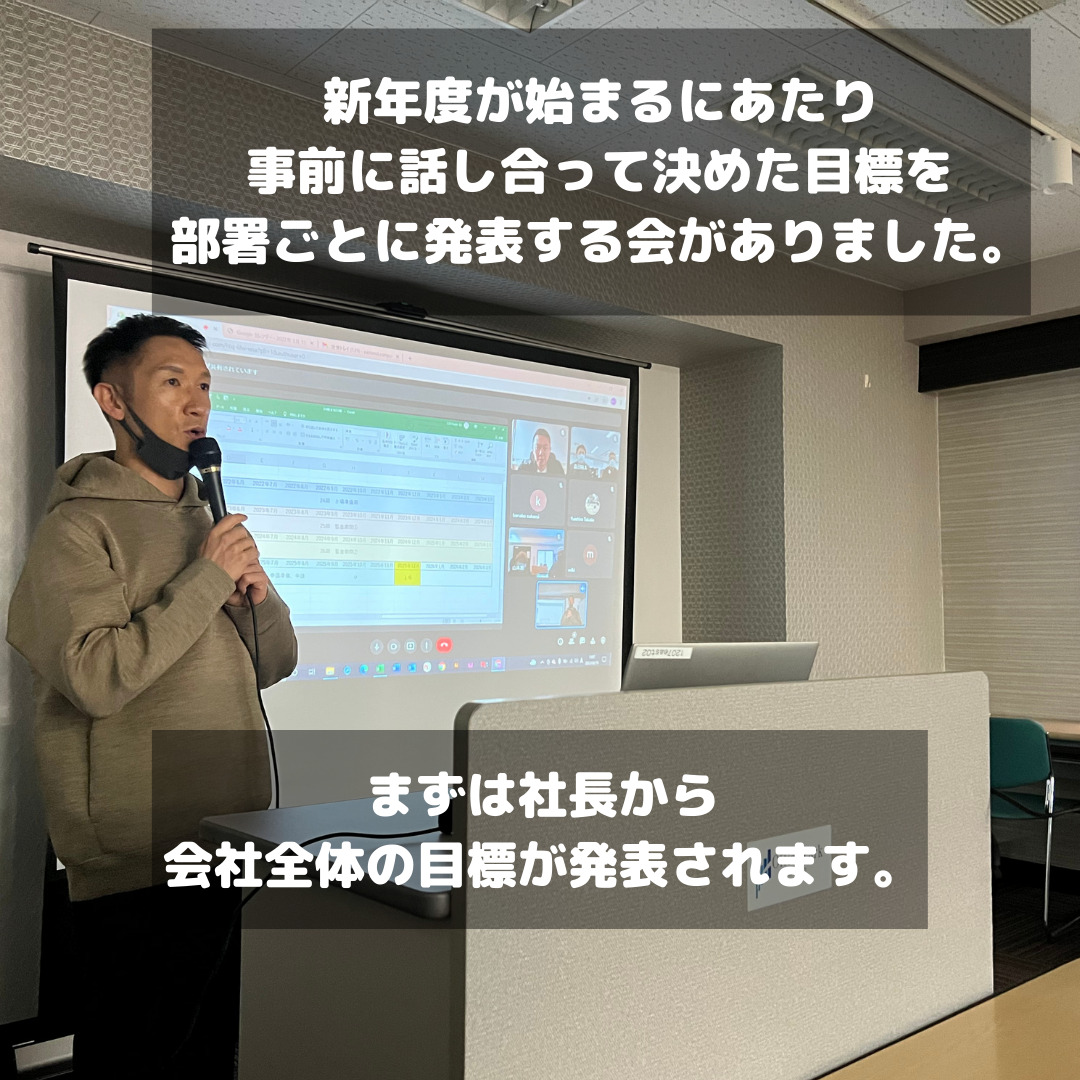 会社の目標、チームの目標、個人の目標を設定し、それに向けて頑張っていきます。