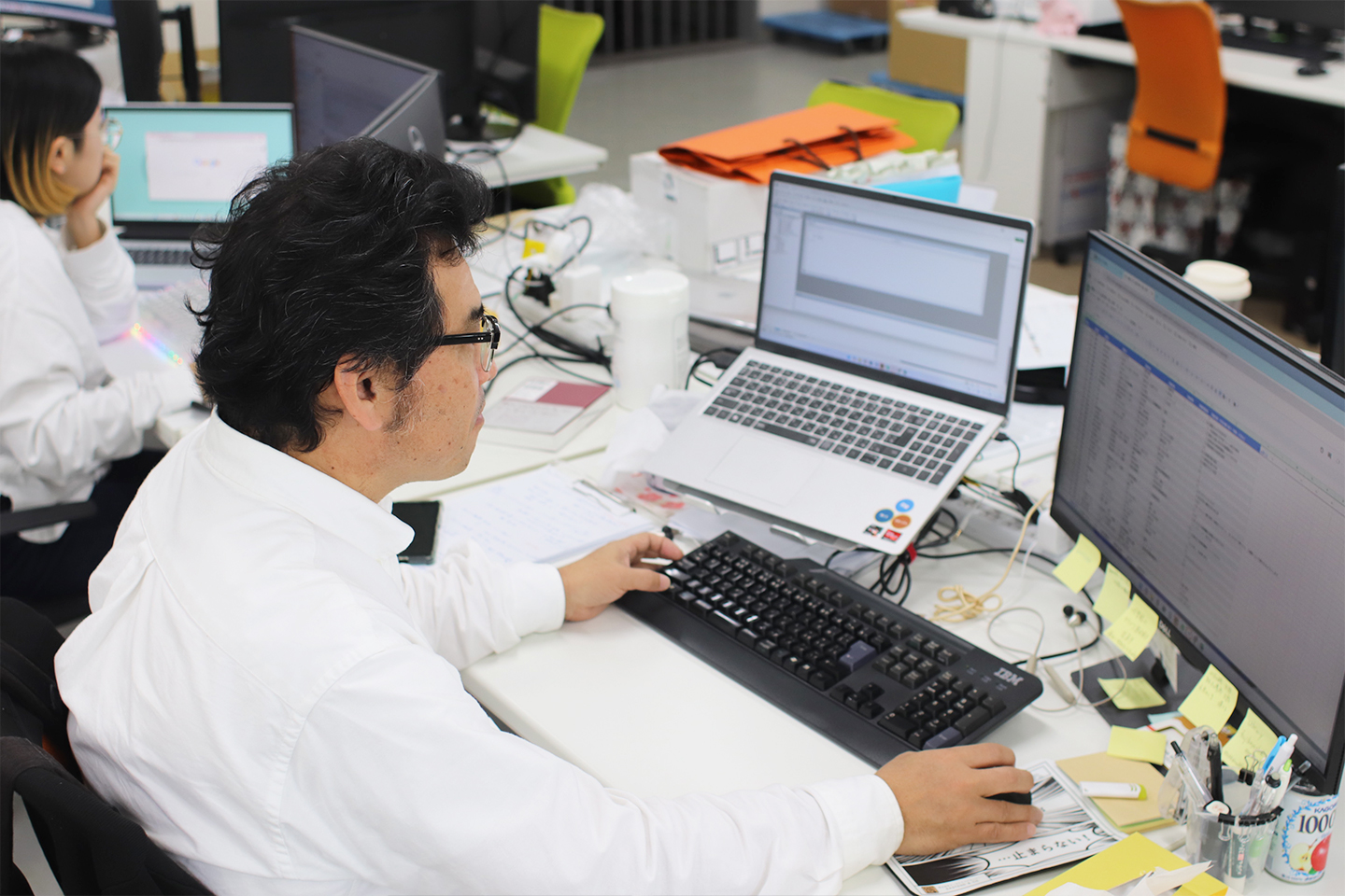 - 2023年8月に入社。現在は異業種ながらITスキルを活かし、現在は企画や設計といった上流工程を担当。頼もしい仲間と協力し合える環境にやりがいを感じている。